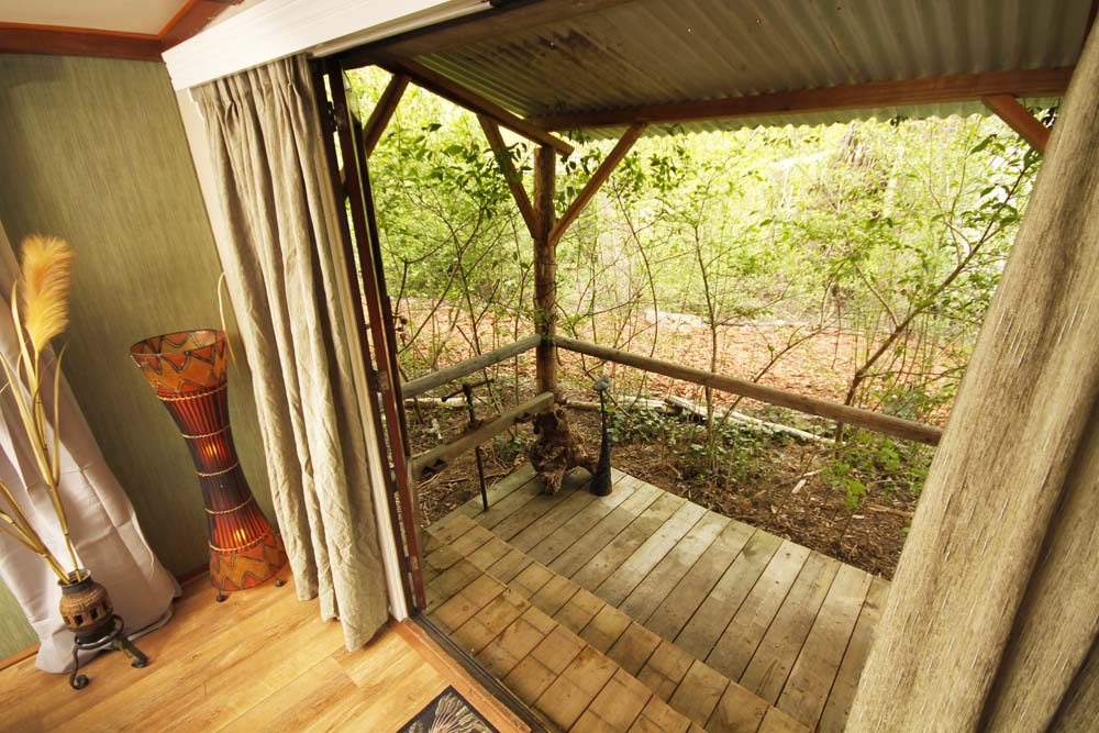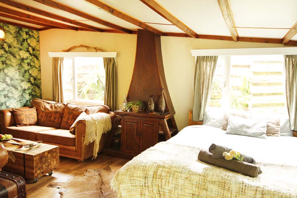 Is our largest room, surrounded by greenery with a cozy outdoor terrace. The room has a comfortable two-person bed and a seating area. It is decorated in a cozy African style due to our love for the continent. Included: Towels, bedding, free Wi-Fi, electrical heating in winter, small plate of fruits, chocolates and two bottles of water.