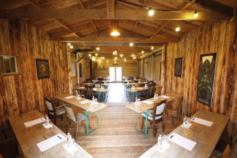 Our indoor workshop space is available for a wide range of activities. Whether you are thinking of a music production workshop or a yoga class, a seminar or meditation session, everything is possible.